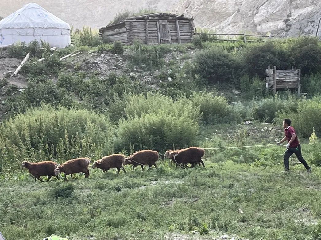 图/Śõpнïę阔克苏河营地很热闹,还有牧民牵着一群小羊走来走去(但是第二天好像有只羊被杀了···)