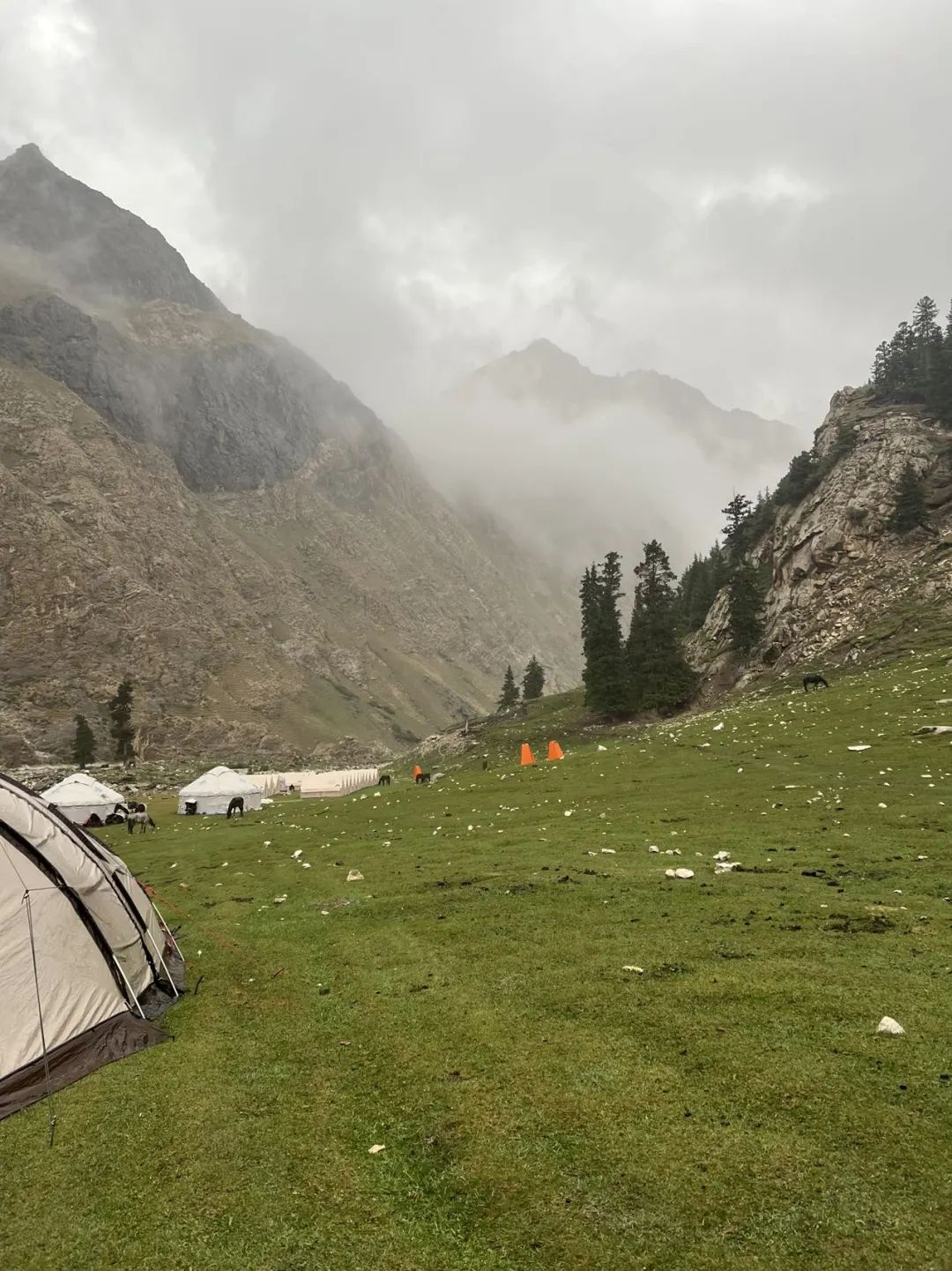 从九点等到十二点,领队突然把大家聚集到营地帐,说要开会。这个时候开会能有啥好消息?果然,水太大,连拖拉机都不一定上的来,实在不行,就只能在山里多呆一天。去年走伊犁72公里,在库尔德宁的时候开玩笑说想留在草原上当牧民,这下可好,出不去了,真要留河谷里了。