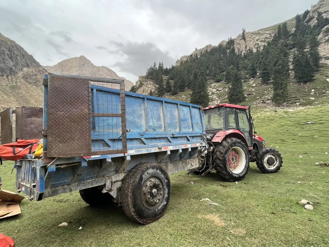 (按照原计划,最后一天马帮会原路返回琼库什台,但是会有拖拉机从黑英山山口开进来把驮包和公共物资拉出去。如果实在实在走不动的人也可以顺路跟着拖拉机出山。因为没有马帮也就找不到马,没有骑马出山这种选项,因此前一晚就商量好了如果碰到极端天气就只能跟着拖拉机出山)