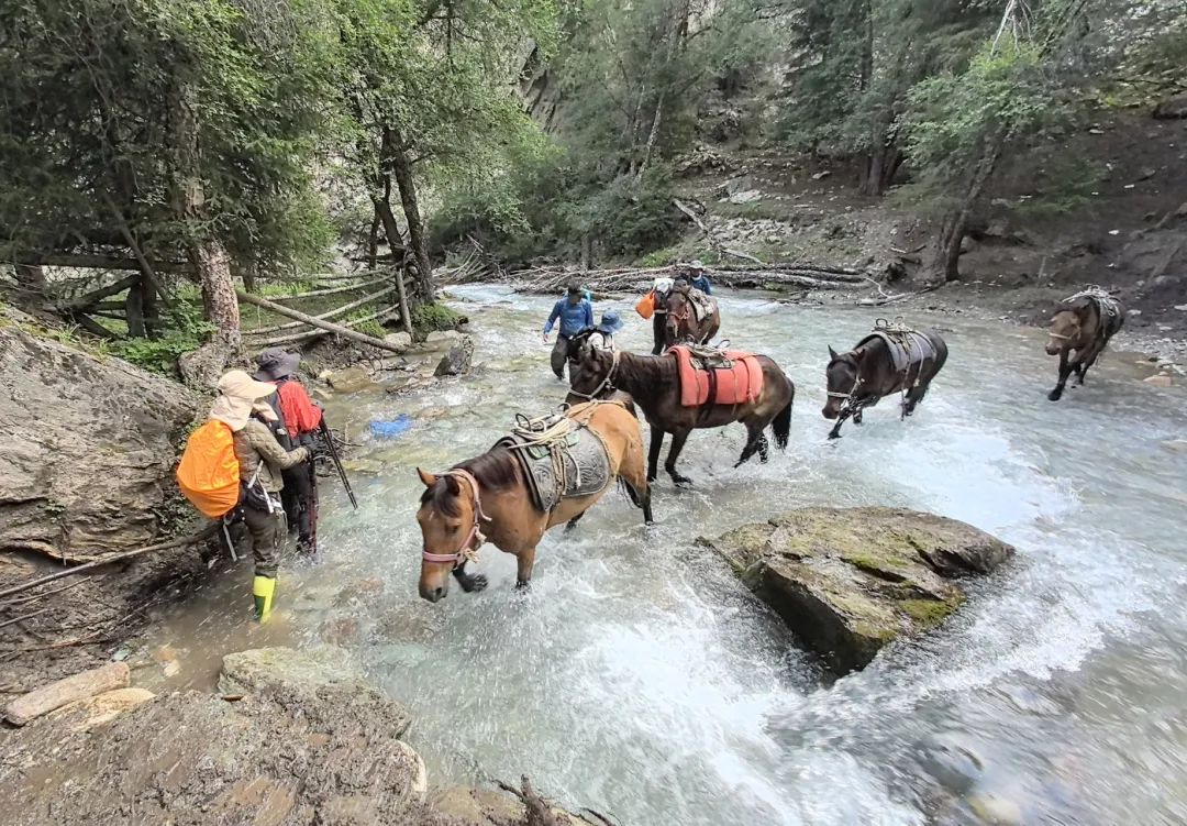 图/Śõpнïę第一次过河,这河还是比较给面子的,水最深也就到膝盖,再加上太阳很晒,也不会觉得有多冷。同一条河过了14次之后,走到了真正的大boss——阔克苏河边(当然了这条河人肯定是走不过去的,曾经的溜索就是为了过阔克苏河)