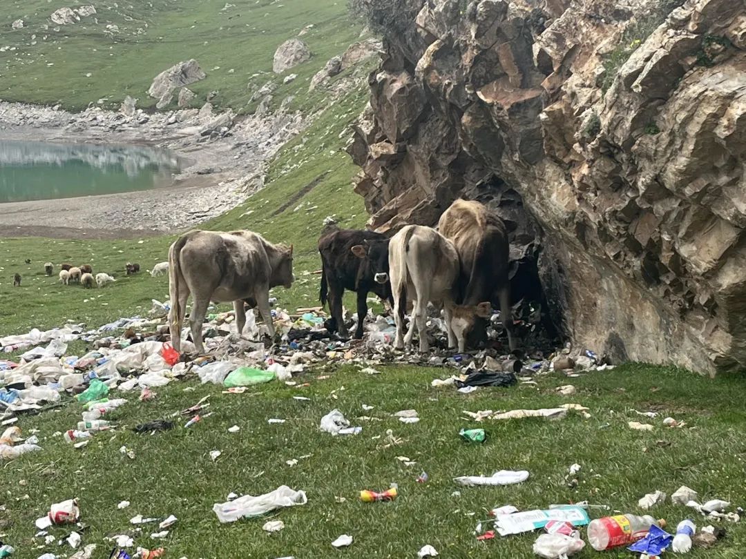 但封闭的山里也不再纯洁。天堂湖边的垃圾已经多到不是一两个人去捡一捡就能清理干净了,污染环境不说,还会被“贪吃”的动物误食。