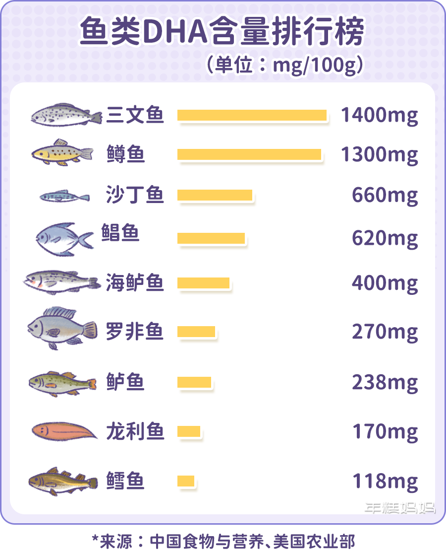 人体自身合成 DHA 的效率很低,远没有食物摄入来得高效。所以如果一周能吃上 200~300 克海产品,娃的需求就基本 OK 了。