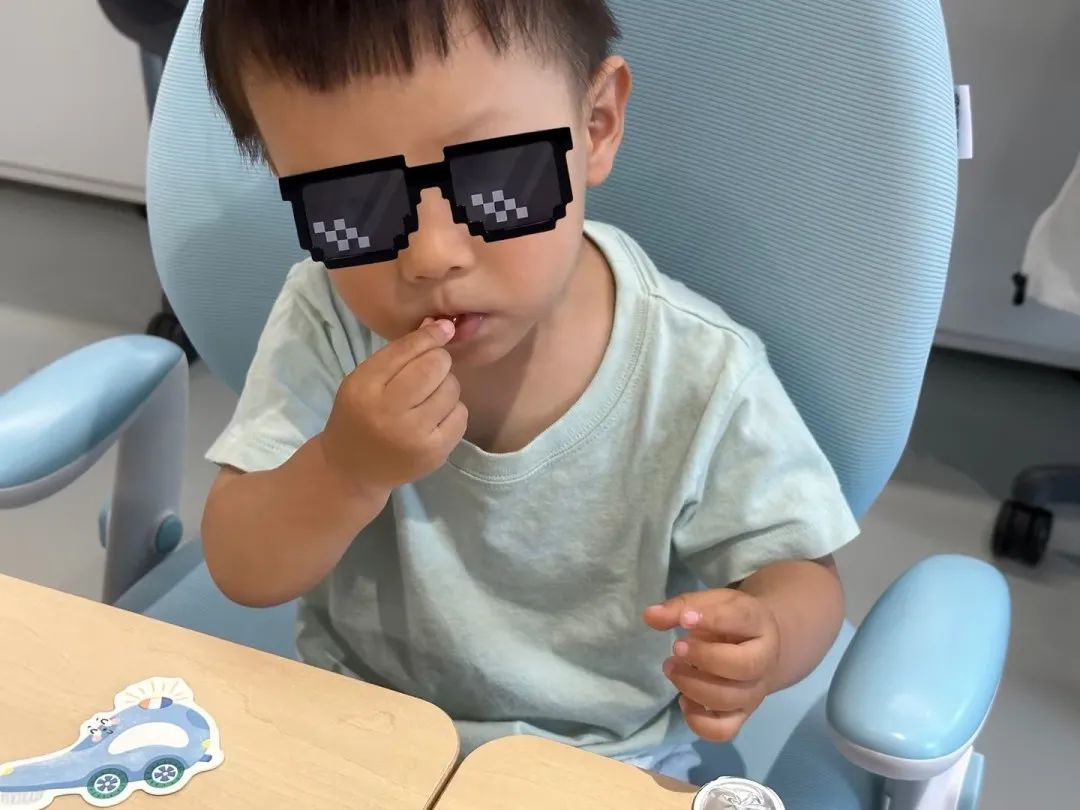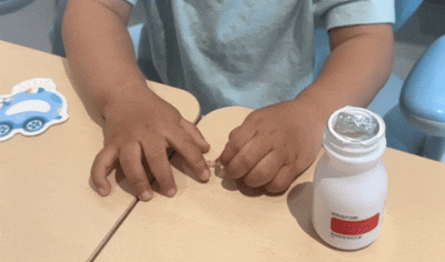 这款 DHA 也不会很腥,反而有点点微甜。年纪小一点儿的宝宝,舔壳也不抗拒: