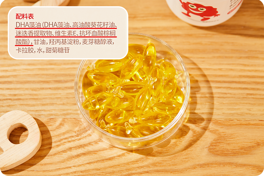 他家的藻油 DHA,就采用了帝斯曼深海裂壶藻为馅心,搭配来自太平洋深海红藻的植物胶皮,双重植物配方,0 蔗糖 0 香精 0 色素,锁住每一粒营养和新鲜~