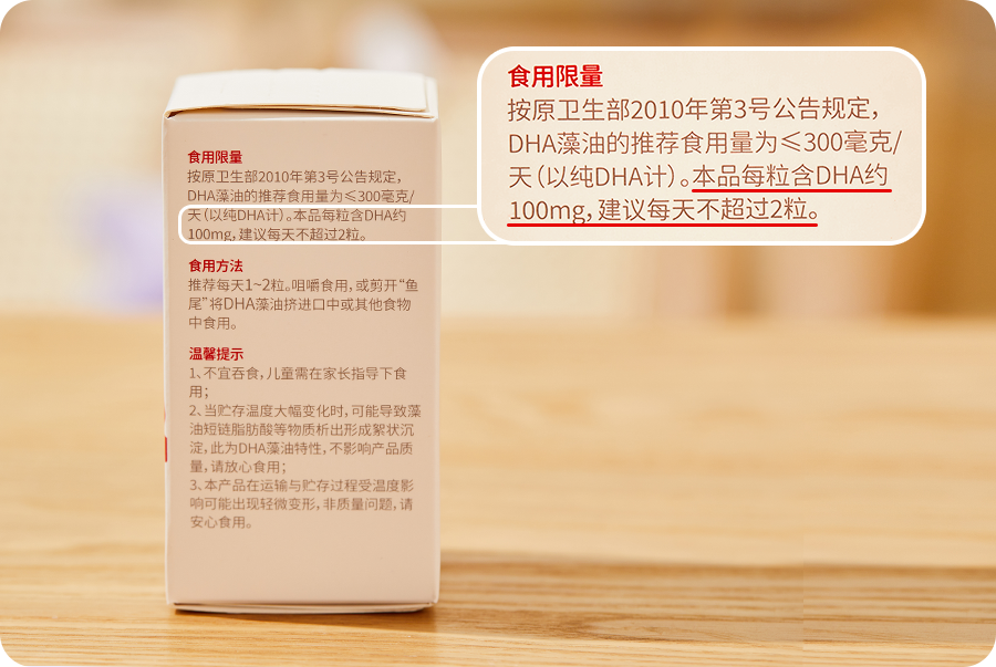 而且每条小鱼,都含有 100mg DHA,符合中国营养学会推荐标准。