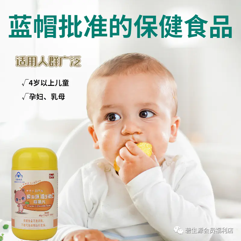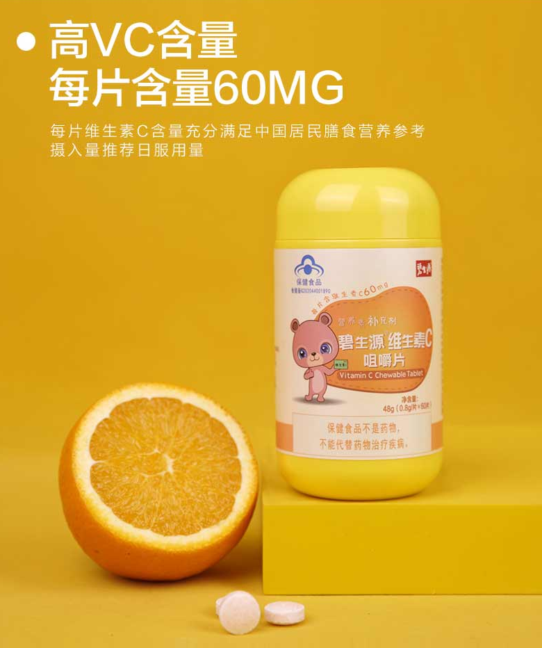 碧生源维生素C咀嚼片,一款专门针对4-17岁少年儿童开发的维生素C补充剂,经过国家备案批准的保健食品。同时也适用于成人、孕妇及乳母,香橙口味酸酸甜甜,大人孩子都爱吃。每天1-2片,就能轻松帮助你补充维生素C,满足身体需求。