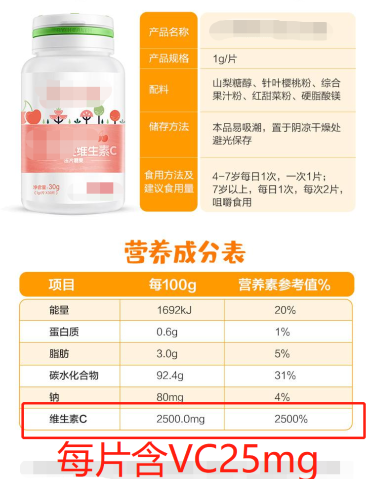 每个年龄段的人每天所需的VC含量自然也是不同的,4-13岁孩子每日1片,每次1片;14-17岁儿童每日1次,每次2片;;成人、孕妇及乳母每日1次,每次2片;直接嚼食;