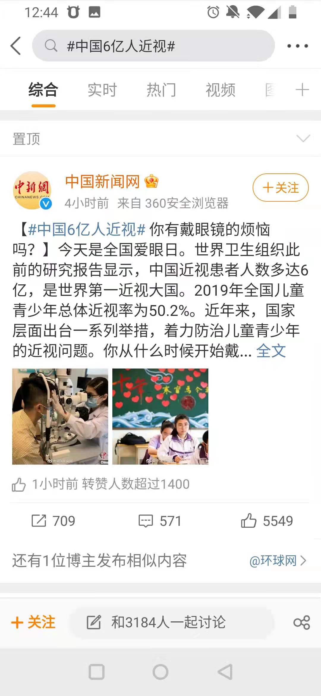 世界卫生组织此前的研究报告显示,中国近视患者人数多达6亿,是世界第一近视大国。2019年全国儿童青少年总体近视率为50.2%。