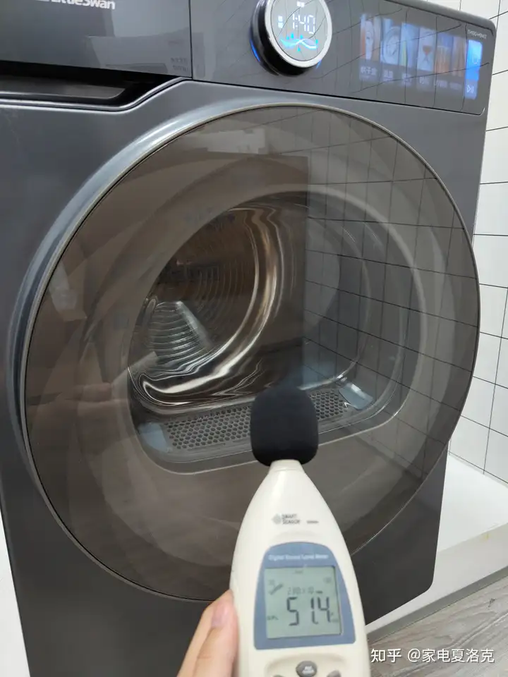 我们在烘干过程中用分贝仪测试烘干机的噪音情况,实测到51.4分贝,烘干过程还是很安静的,距离三米外基本听不到了。