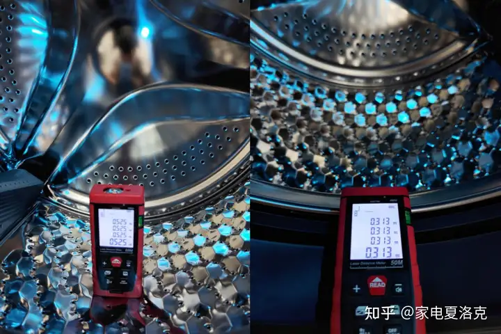 既然机身做了纤薄设计,内筒深度自然会降低,为了保证容量一致,本色洗衣机的内筒筒径也做了加大处理,实测筒径为525mm,筒深313mm。