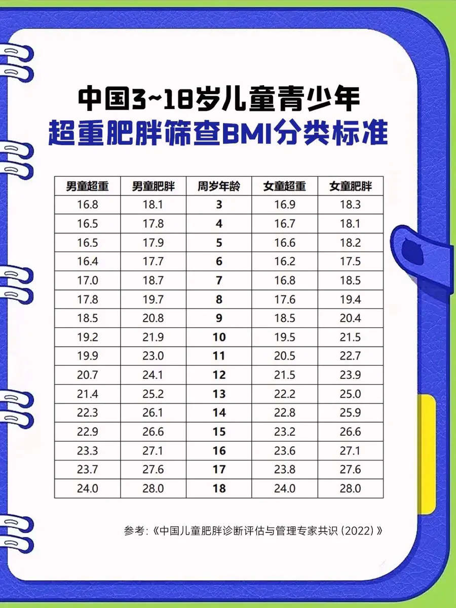 🔥速查儿童BMI临界值