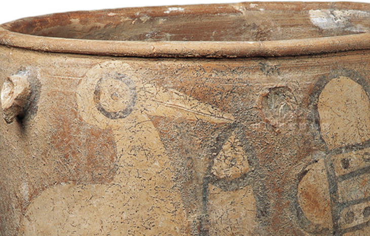 彩绘陶缸属于仰韶文化瓮棺葬具,因在河南伊川附近出土较多,故又被称为“伊川缸”。它主要作为成人葬具来使用。普通伊川缸大多造型简单,素朴无彩。鹳鱼石斧图彩绘陶缸不但施彩,而且构图复杂,在题材选择与画面构思上都强调了图案自身的独立性。般认为此陶缸应该是氏族首领的葬具。白鹳应是首领本人所属氏族的图腾,鱼则是敌对氏族的图腾。石斧是权力的标志,是首领所用实物的写真。首领生前曾经率领白鹳氏族同鱼氏族进行了殊死的战斗,并取得了决定性的胜利。人们将这些事迹寓于图画当中,记录在首领本人的瓮棺上,通过图腾形象与御用武器的顶级组合来表现重大历史事件,以纪念首领的英雄业绩。