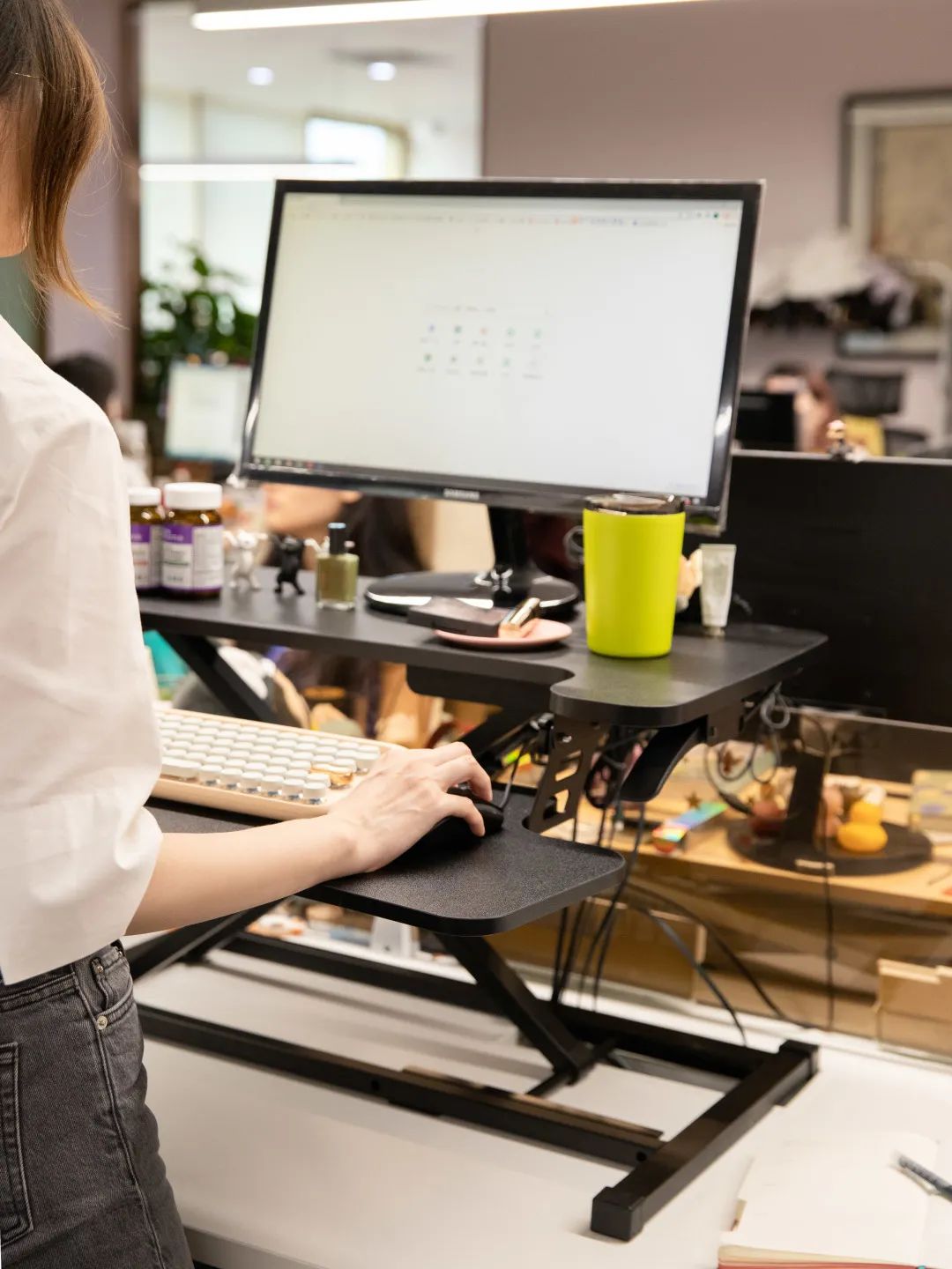 用了它家的升降桌,我整个人确实感觉会放松不少,除了因为它的合理设计,也因为升降桌本身的存在,也会反复提醒我要注意肩颈和坐姿。实不相瞒,当下正写稿的我就把二郎腿给撤掉了哈哈哈~
