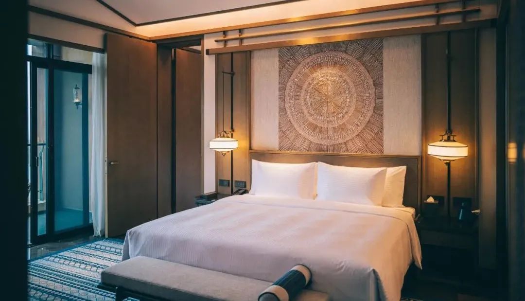 豪华客房建筑形式以瑶寨民居简约风格为基调,可于独立景观阳台将亭台楼阁、群山合抱、碧水如黛的山水景观尽收眼底。“万达嘉华之床”及“妙梦”助眠系列客房用品带您触摸惬意梦境。