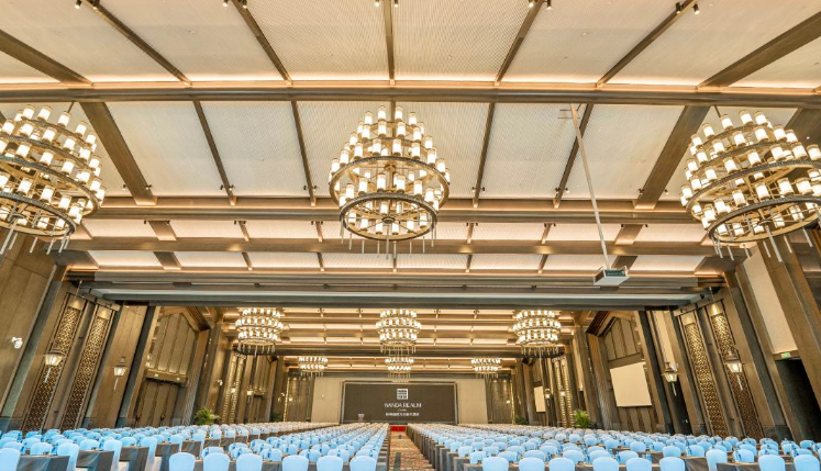 和酒店大堂主楼紧挨着的是会议中心,连接主楼和会议中心之间的是中庭小花园、会议中心的大堂和贵宾厅。