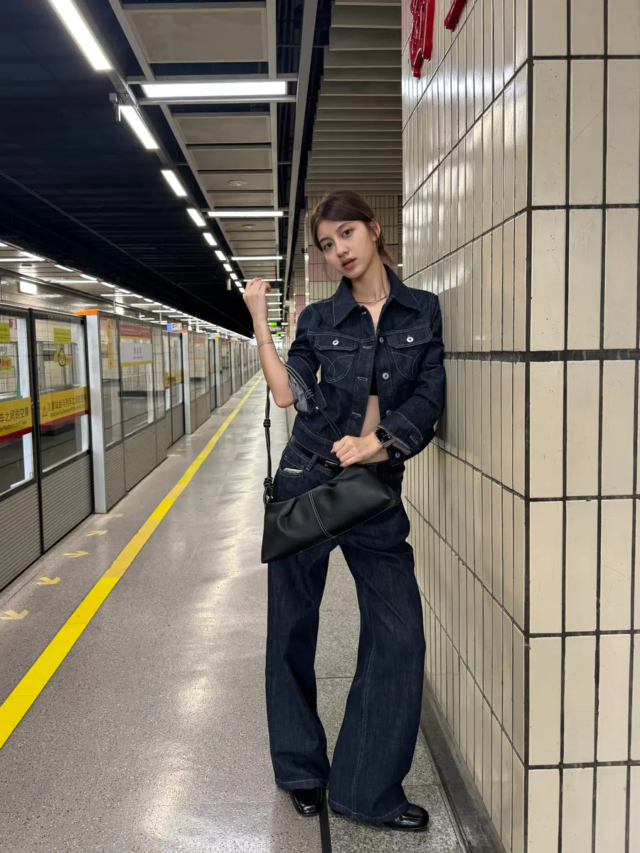 新品上身 | 全黑牛仔,地铁站里的时尚icon。