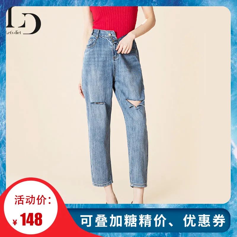 推荐款式:Let's Diet破洞萝卜牛仔裤