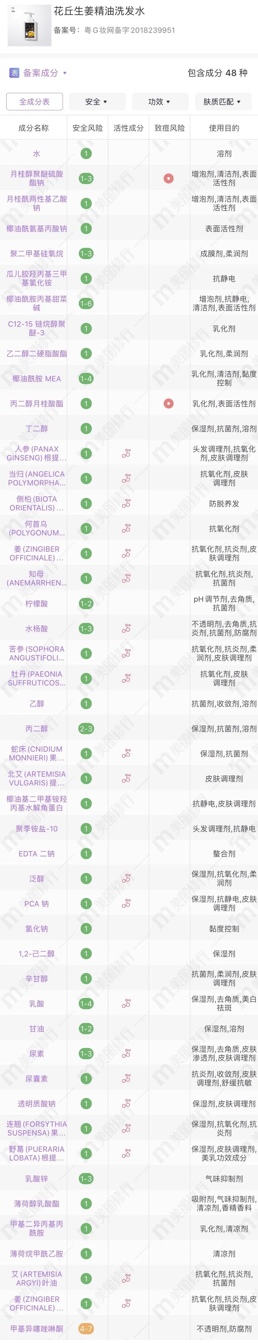 除了姜辣素外,这款生姜精油洗发水还有如人参、当归、侧柏、何首乌、苦参等多种植物精粹成分。