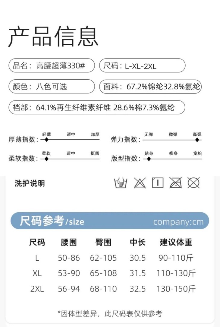 收腹裤舒不舒服,尺码也得背锅,所以大家不要去挑只做均码的收腹裤。