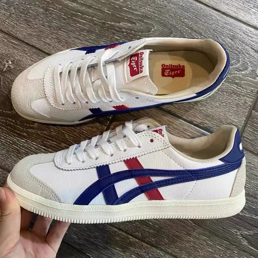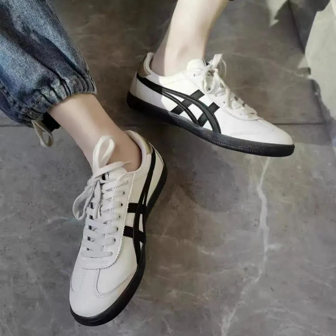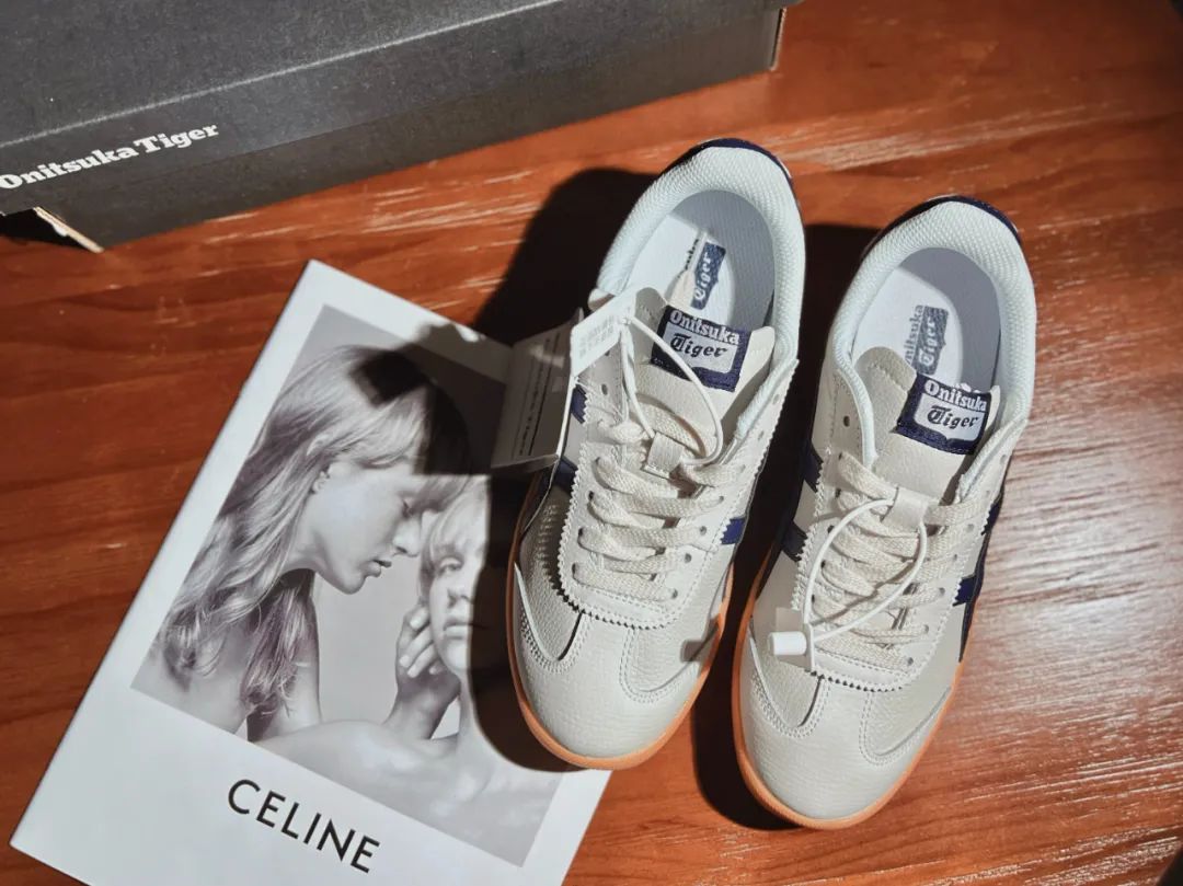 后来,鬼塚虎官方还多次推出了李小龙纪念款鞋,来纪念这位功夫巨星。英国威廉王子也很爱鬼塚虎,一年四季、各种场合,都穿着这红蓝条小白鞋出镜,一穿就是十年。2023年春夏,鬼塚虎又双叒叕出升级款了——【Onitsuka Tiger鬼塚虎得分 TOKUTEN复古德训鞋】。单看图可能和经典款没啥区别,但拿到鞋你就会被圈粉的。它的设计灵感源于复古德训鞋,鞋头沿用了T字形的皮面拼接,质感高级,全logo贯穿到尾部的点缀又没那么沉闷~我上班也穿、运动也穿、逛街也穿......每天都离不开了。价格也真的很优惠,比官网活动价还便宜,只要299元~