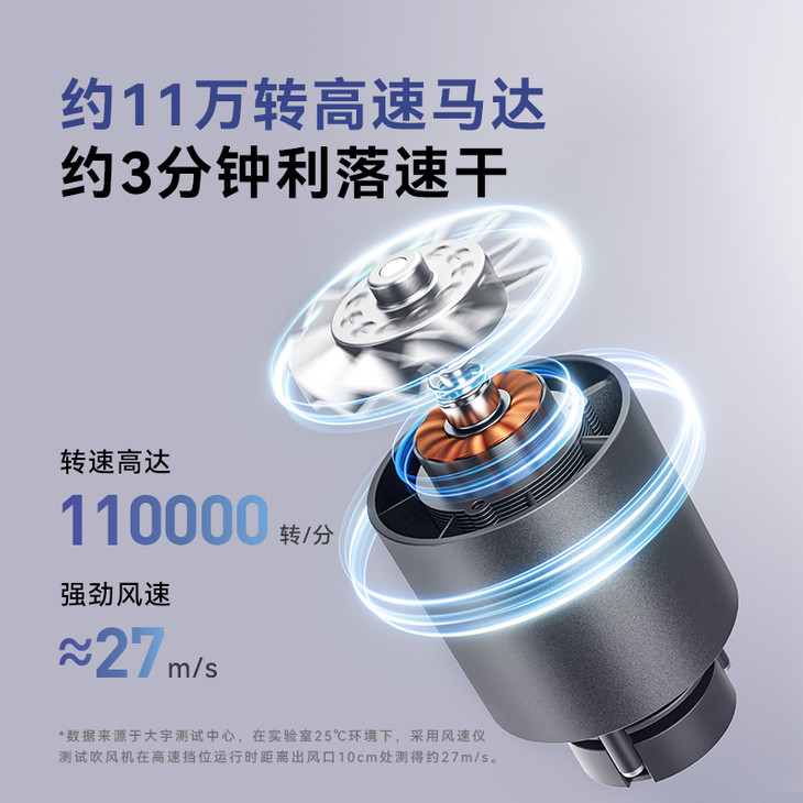 搭载高速无刷电机,风力强劲,快速带走头发水分,约3分钟即可吹干中长发,早上多睡半小时不是梦!