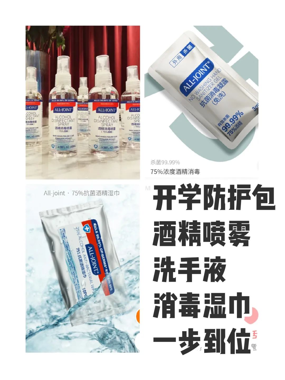 All-joint一次性湿巾2包/酒精喷一瓶/便携洗手液一盒