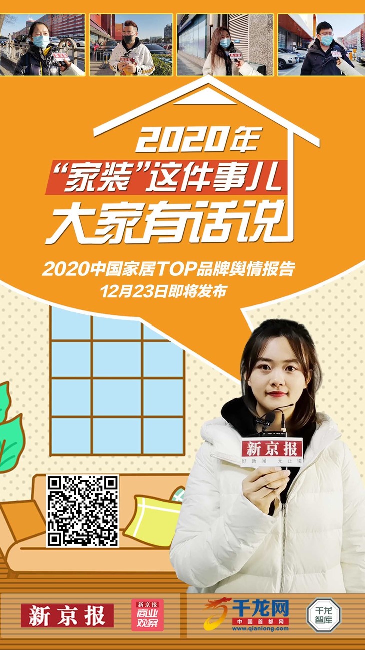 针对家居家装这件事儿,12月23日,新京报商业消费新闻部联合千龙智库将发布《2020中国家居TOP品牌舆情报告》,对家居企业的品牌传播、价值影响、口碑评价、消费诉求等进行深入分析,并解读后疫情时代家居行业的新特点、新趋势,以期为家居行业的发展提供借鉴与参考。