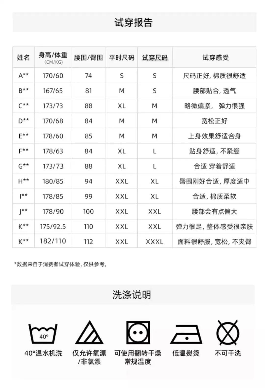 尺码建议:
