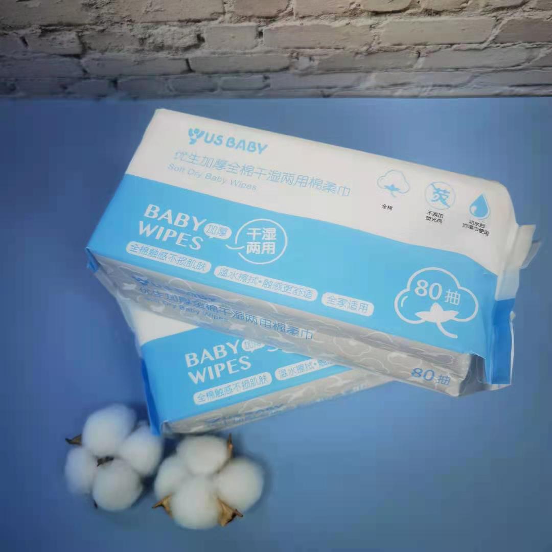 优生加厚全棉干湿两用棉柔巾 80抽*2