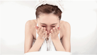 Step 3 用温水冲干净后,可以双手捧冷水泼到脸上,冷刺激会使毛孔收缩,有利于细致毛孔。