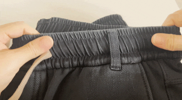 裤腰采用松紧弹力腰带设计,腰口弹力非常好,外出吃撑了也不怕会勒肉。