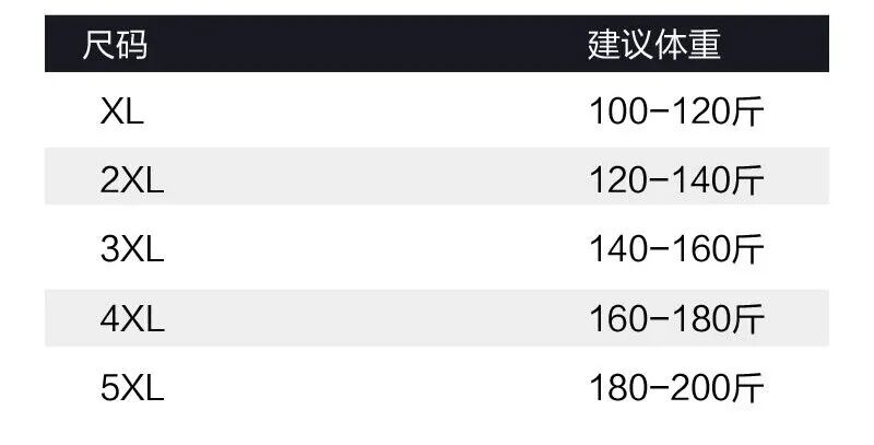 尺码从XL到5XL都有,不管高矮胖瘦,都能找到自己的尺码。