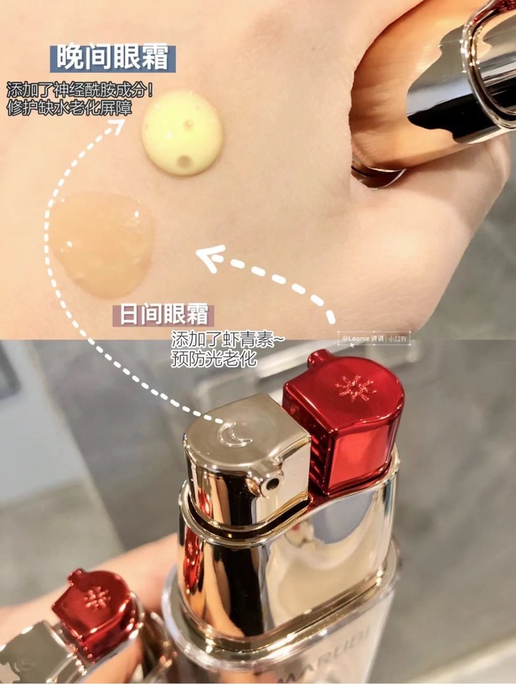 最明显的感觉就是,晚上夜间涂抹至柔润半吸收的状态,第二天眼周紧紧滴,眼纹淡了不少!