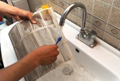 在清洗过滤网的时候,首先要切断电源,再打开进风栏;取出过滤网,用水或吸尘器清洗过滤网,水温不要超过40度,用热的湿布或中性洗涤剂清洗,然后用干不擦净,同时不能用杀虫剂或其他化学洗涤剂清洗过滤网。