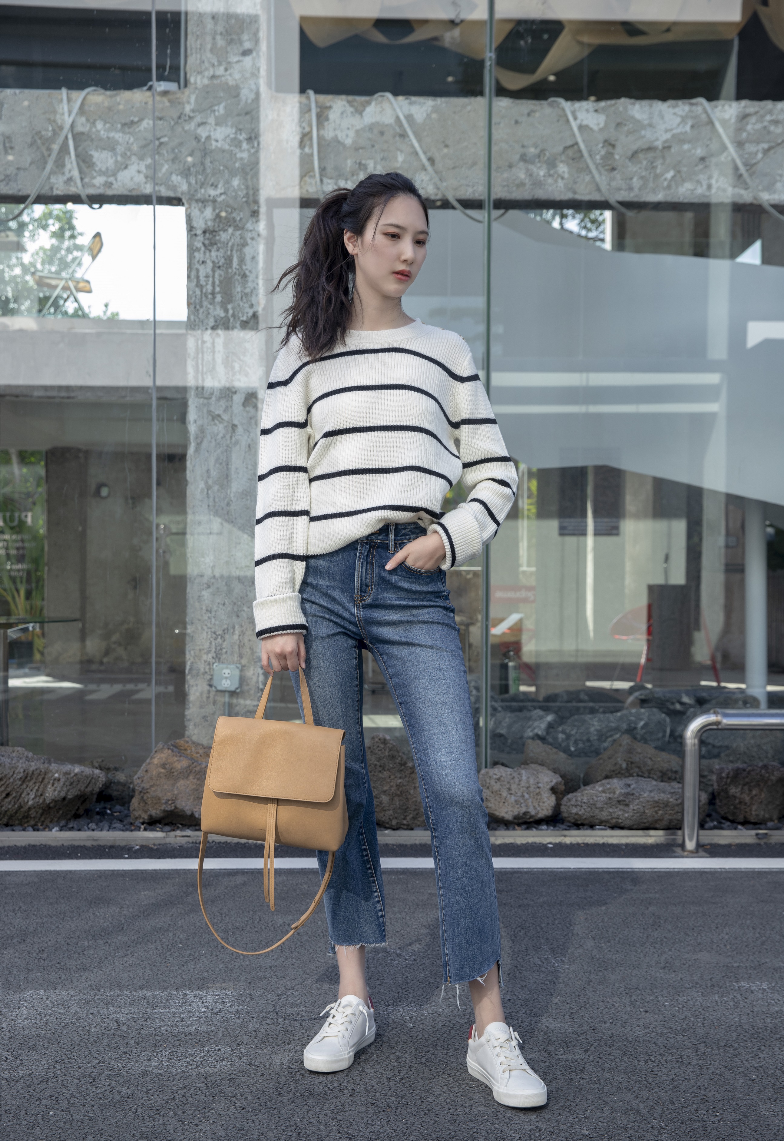 平时出门的时候,我还是喜欢简单点的穿搭。牛仔裤就是我的不二之选,前短后长+微喇的设计,把我的腿衬托成一米八