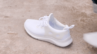 再来看看透气性。气体能轻松穿透网眼,足以见得它的透气程度,夏天穿它跑跳也不怕出汗闷脚脚臭。