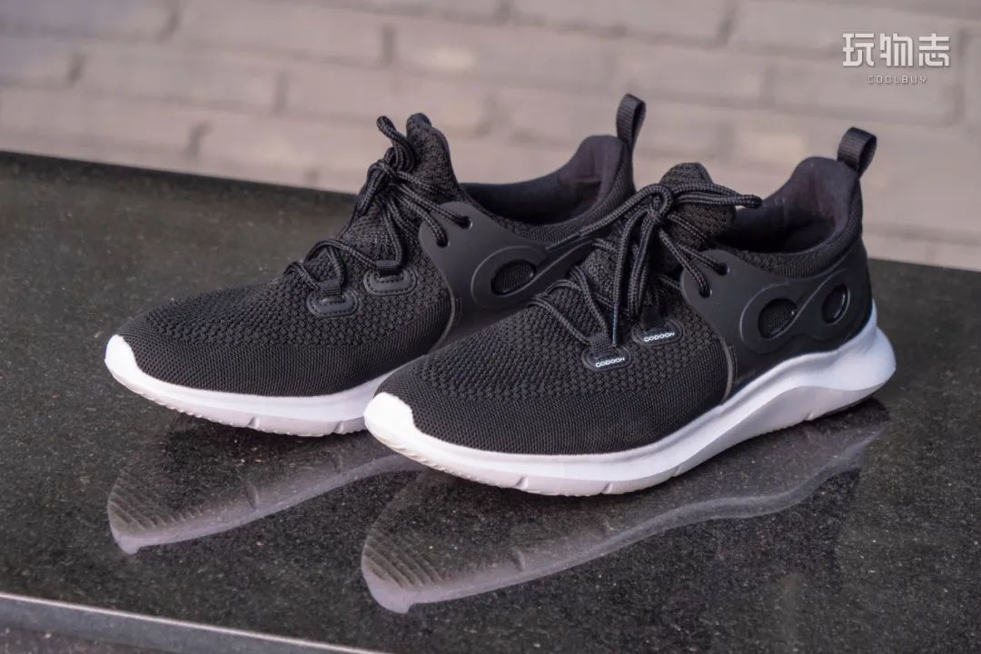 咕咚的鞋面采用了 Microknit 一体微距飞织面料,遍布 10000+ 透气孔。