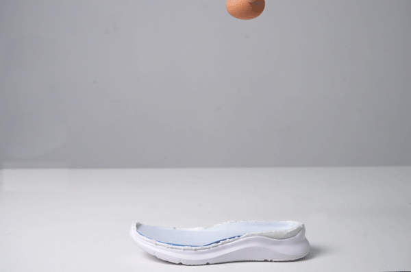生鸡蛋从 30cm 高的位置落到鞋垫上,仍能保持不碎!保护膝盖肯定不在话下,不用担心越跑越累啦。