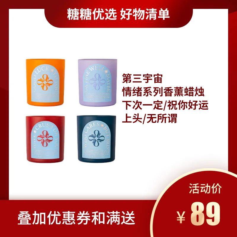 除了香水,我们还准备了香氛产品中的香薰蜡烛,这次的蜡烛价格亲人,我强烈建议大家都要尝试一下这个品牌第三宇宙这两款蜡烛里的橙色款,名叫祝你好运,气味是甜而不腻的橘子气泡。