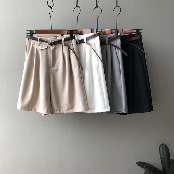 韩版宽松高腰显瘦阔腿西装短裤