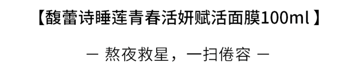 这款面膜真的超级适合懒人护肤,睡前使用,能整夜紧致修护肌肤,让每颗细胞都如同喝饱了水。深层滋养配方就像给肌肤穿上了“紧身衣”一样,立塑容颜,紧实线条,令面部轮廓更精致、立体。肌肤在睡个“美容觉”之后,在第二天早上会变得特别细腻饱满,并且呈现出一种特别通透的光泽感!