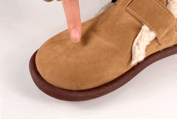鞋内包括鞋垫都是厚绒,鞋外合成革材质透气耐磨损,一脚踩进去就像个“小暖炉”,