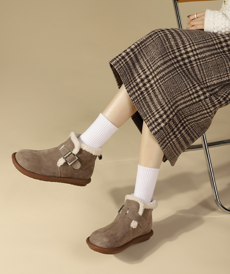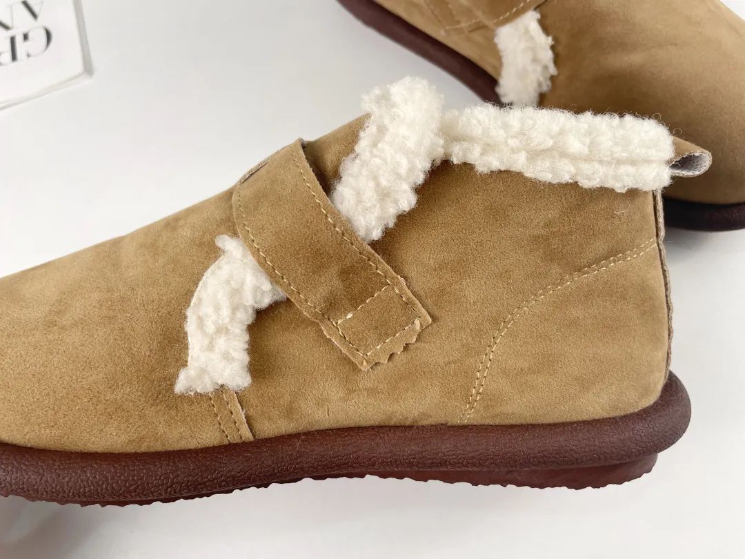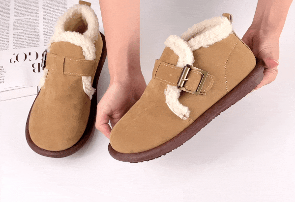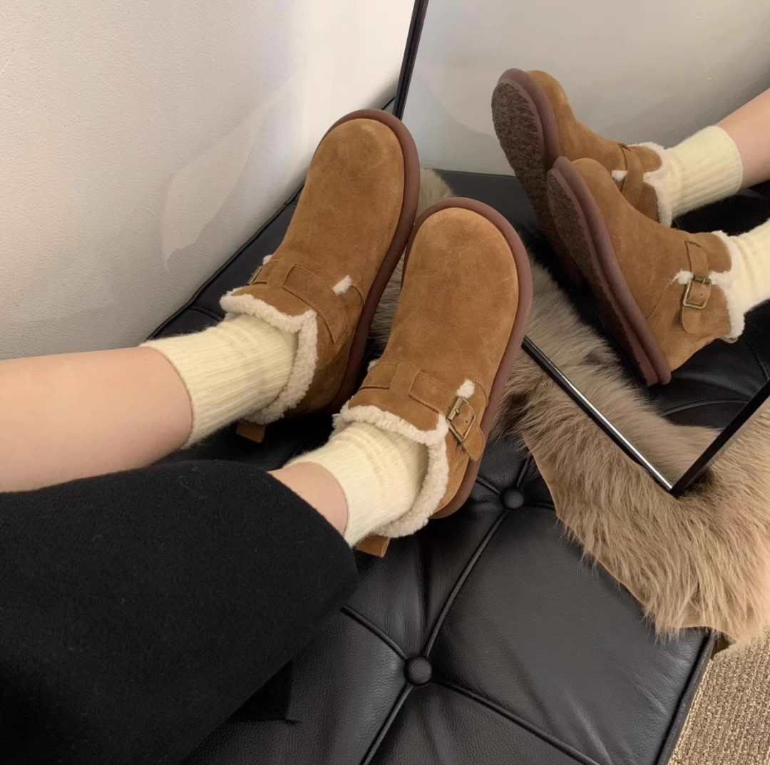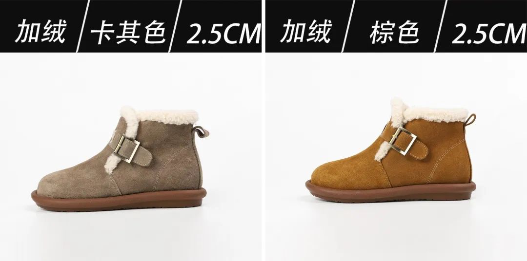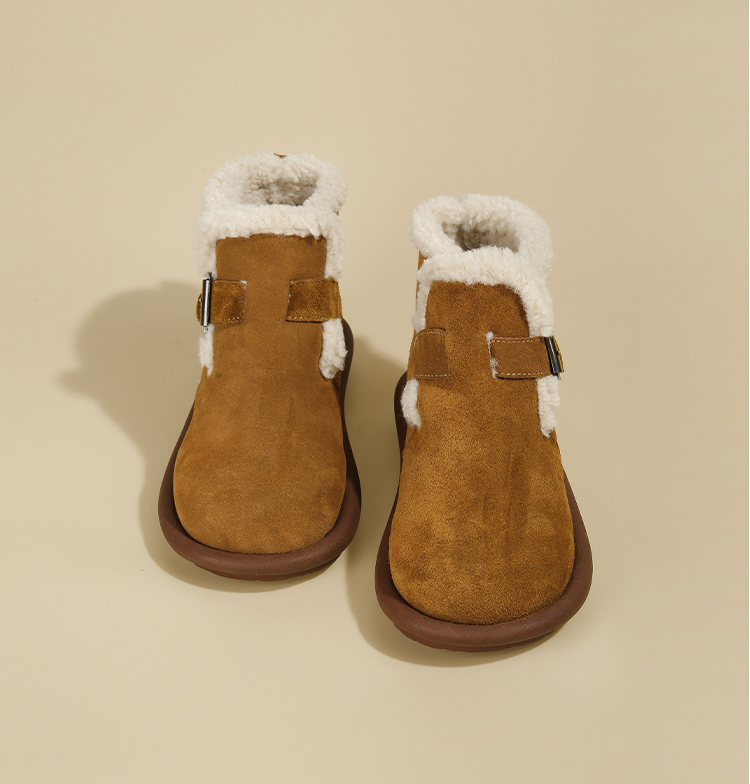 它的鞋型精致秀气,侧围扣饰+圆型鞋头+厚实绒毛,浑身散发着一种“我很实穿,也很好看”的气质。