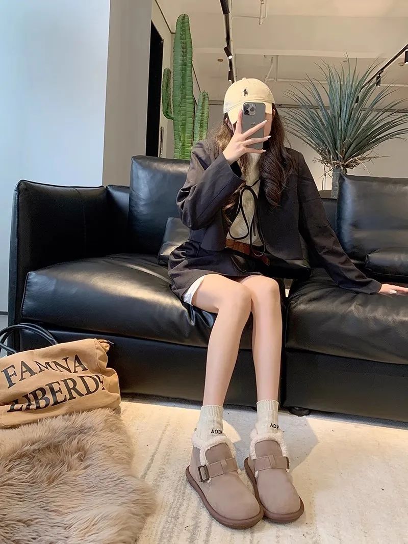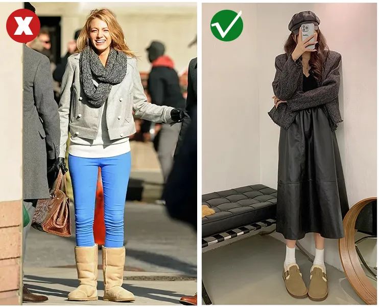 相比繁杂的长筒,短筒雪地靴更简洁利落,穿在脚上,怎么搭都能穿出大长腿!