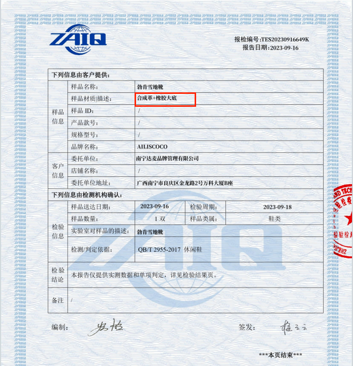 它不同于市场来路不明的材质,这款雪地靴也是通过质量检测的: