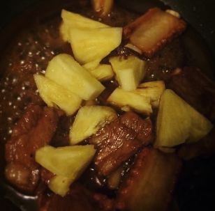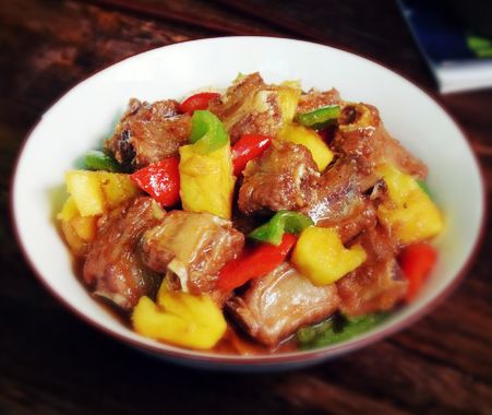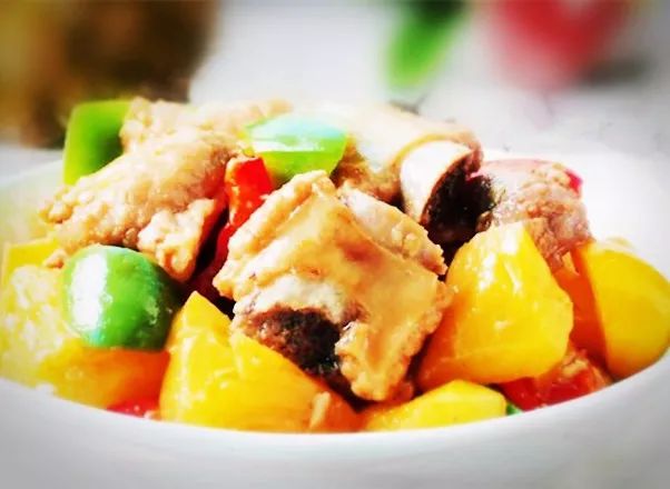 黄澄澄的果肉酸酸甜甜,白色的排骨,炒在一起,肉也变得清甜多汁很开胃,一道名菜由此而生。