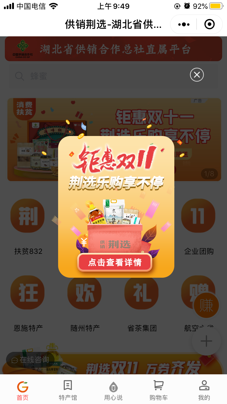 双十一是购物狂欢的节日,更是“精准扶贫”工作走近大家身边的日子。湖北供销合作电子商务有限公司(以下称为“合作电商”)充分整合线上及线下资源,开展节日促销活动,积极做好消费扶贫行动的倡导者。
