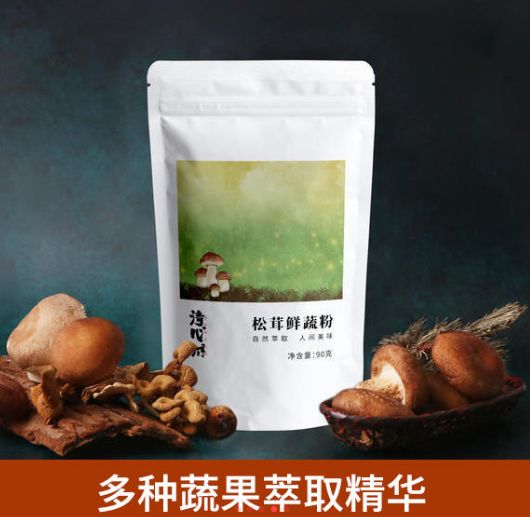 鲜蔬粉的鲜味主要来源于松茸。被誉为“万菌之王”,位列松茸、灵芝、冬虫夏草、牛肝菌这四大菌王之首。