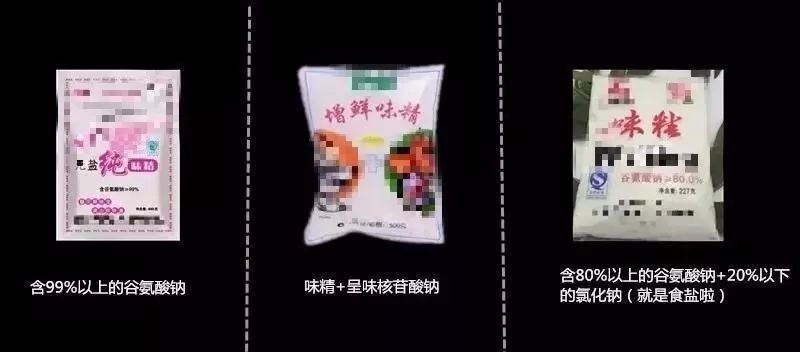 我们市场上有3种在售的味精:纯味精、含盐味精、增鲜味精。