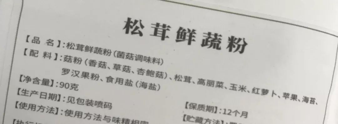 蘑菇精,看起来好像健康一些,依然含有大量味精和其他的鲜味核苷酸(肌苷酸和鸟苷酸)。同时,食用香精四个字,赫然在目。